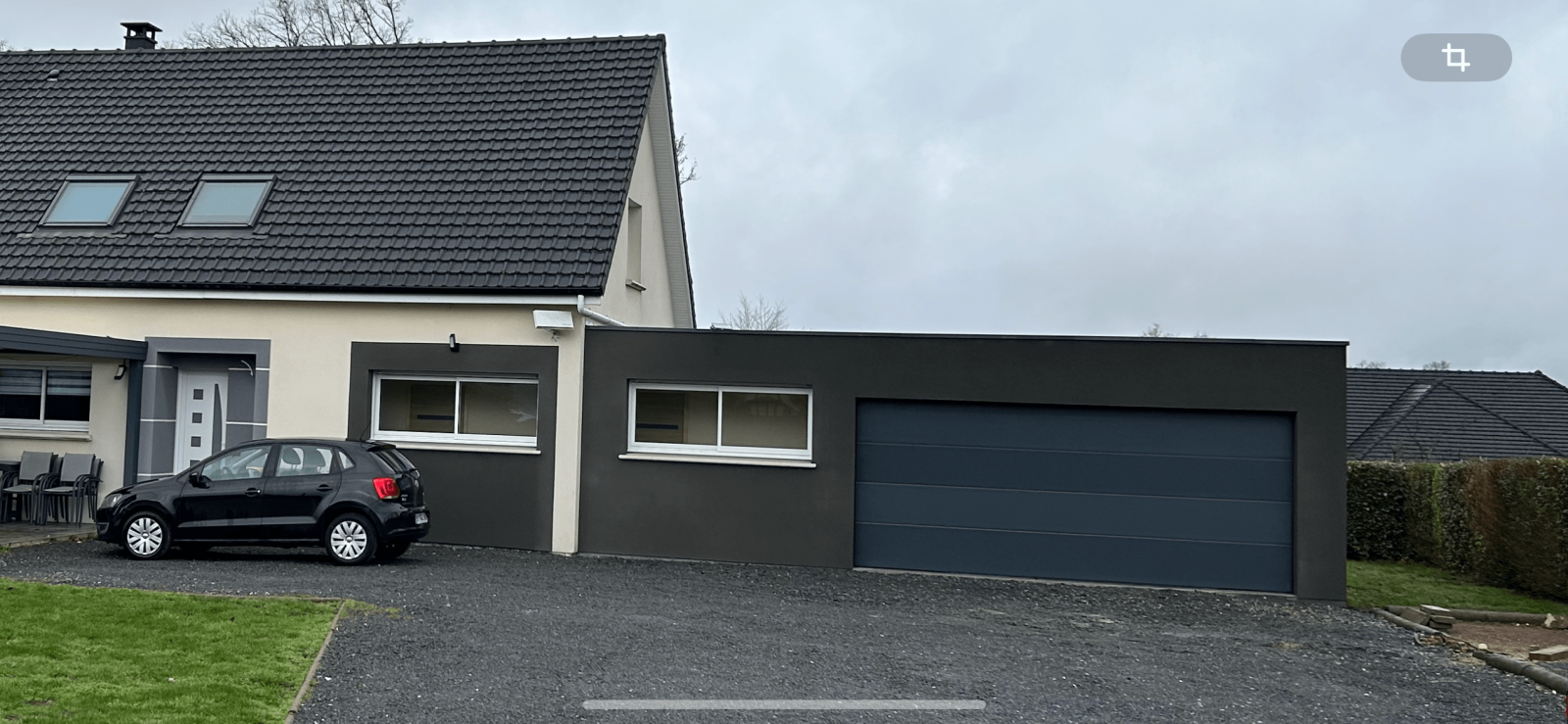 CGMS Construction vous présente l'une de ses dernières réalisations d'agrandissement de maison près de Bolbec. Notre client souhaitait construire un garage acollé à la maison, nous avons donc proposé une solution d'extension béton avec enduit monocouche gris pour la finition.